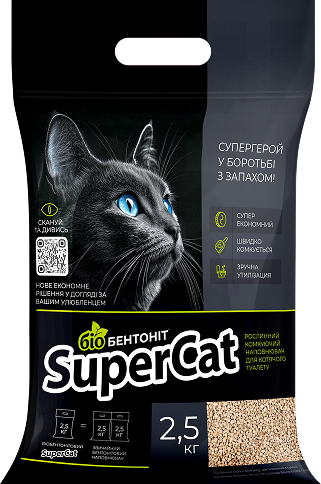 SuperCat Біобентоніт це рослинний аналог традиційних бентонітових наповнювачів. Виготовлений з натуральних рослинних волокон, тому він безпечний для кота, не пилить і не містить жодної хімії.