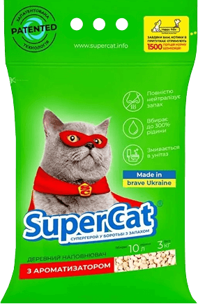 Містить натуральну ефірну олію. SuperCat не тільки поглинає неприємні запахи, а й наповнює свіжістю все приміщення